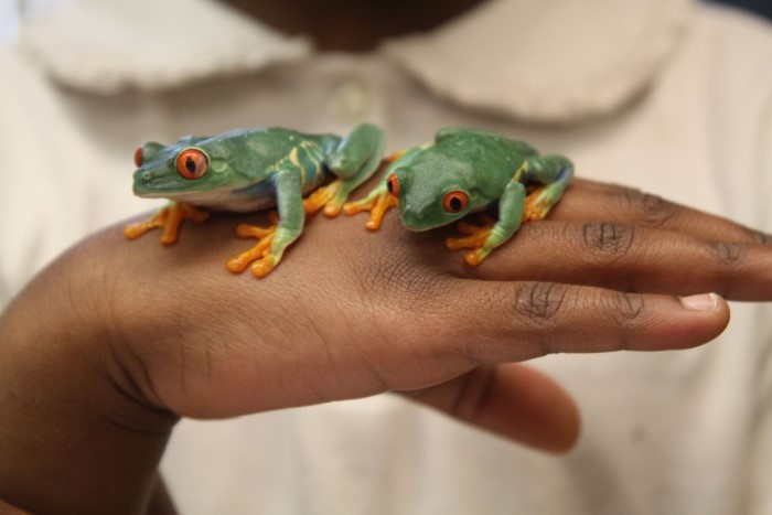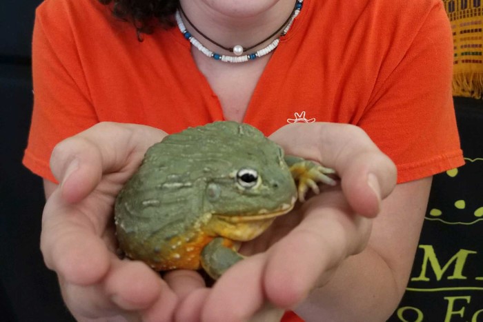 What is it about frogs that so fascinates a child? With a perpetual smile on their face, frogs seem to make people grin as well! Animal Embassy will introduce an incredible diversity of live frogs while exploring the concept that frogs come in many different colors, sizes and shapes. Participants will meet Choncho, the rotund African Bullfrog, while learning that not all frogs excel at jumping, and that flies just can't satisfy the second largest species of frog. Also, we'll meet a variety of tree frogs and understand that some frogs can not only jump, but can also swim, climb, and even glide through the air! And just as there are many languages spoken by people of the globe, each frog species has its own distinctive call. Finally, Fascinating Frogs will explore the amazing process of metamorphosis as we meet and learn about an incredible diversity of frogs from around the world.